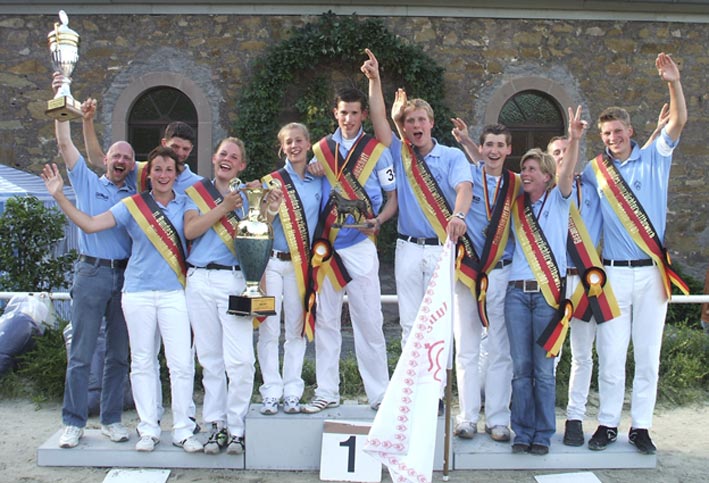 Bei den Jungzüchterwettbewerben gilt es - aufgesteilt nach den verschiedenen Altersklassen - in den drei Teilprüfungen Vormustern, Pferdebeurteilung und Theorie zu zeigen, was man kann und weiß. Dass der Spaß dabei nicht zu kurz kommt, zeigt auch die vierte "Teilprüfung": am Ende eines jeden Jungzüchterwettbewerbes ist Party angesagt !
